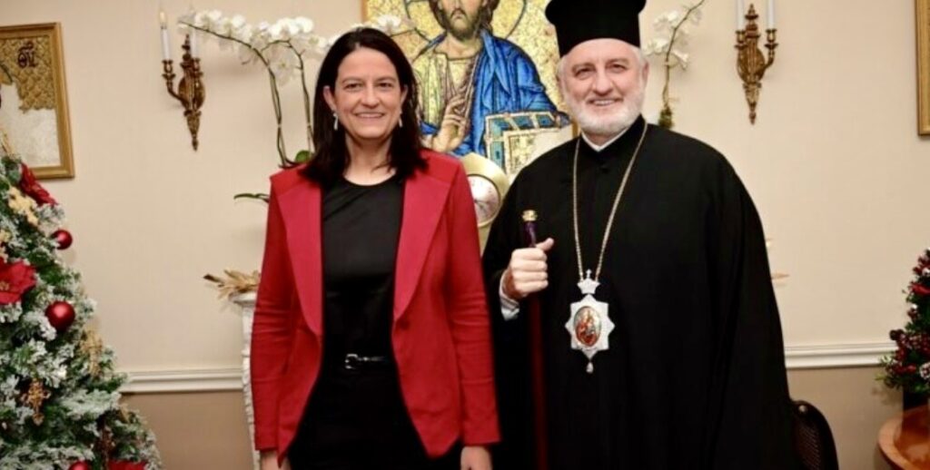 Επίσκεψη στην έδρα της Αρχιεπισκοπής Αμερικής στη Νέα Υόρκη πραγματοποίησε η Υπουργός Εργασίας και Κοινωνικής Ασφάλισης, Νίκη Κεραμέως, η οποία έγινε δεκτή από τον Αρχιεπίσκοπο Ελπιδοφόρο. Την Υπουργό συνόδευε η γενική πρόξενος της Ελλάδας στη Νέα Υόρκη, Ιφιγένεια Κανάρα.