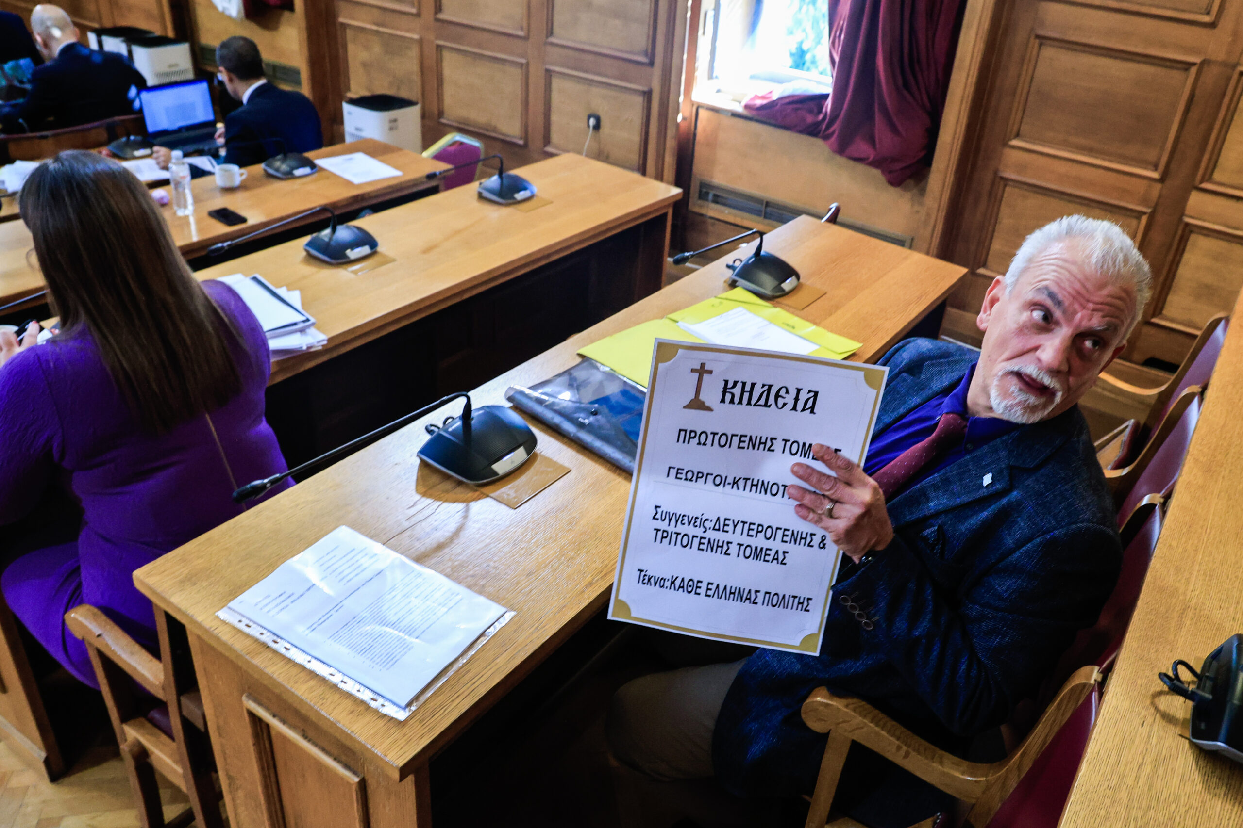 Με κηδειόχαρτο για τον αγροτικό τομέα, μπήκε στην αίθουσα της εξεταστικής επιτροπής για τον ΟΠΕΚΕΠΕ ο Κώστας Μπούμπας, βουλευτής Σερρών της Ελληνικής Λύσης, λίγο πριν καταθέσει ο Γιώργος Ξυλούρης ή αλλιώς «Φραπές»