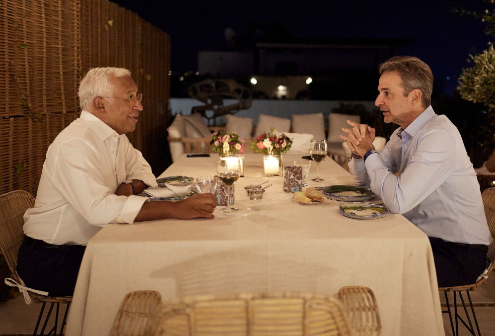Δείπνο στην οικία του παρέθεσε ο πρωθυπουργός Κυριάκος Μητσοτάκης στον πρόεδρο του Ευρωπαϊκού Συμβουλίου, Αντόνιο Κόστα. Οι δύο άνδρες είχαν την ευκαιρία να συνομιλήσουν σε φιλικό κλίμα, δειπνώντας στη βεράντα της πρωθυπουργικής κατοικίας.
