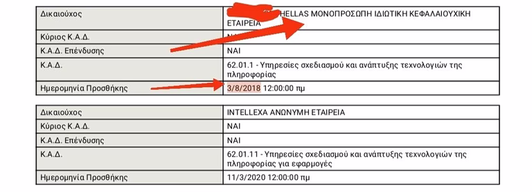 Ομως από την απλή παρατήρηση του πίνακα που δημοσιεύεται στην έντυπη έκδοση αλλά και τα πλήρη δεδομένα που παρουσιάζονται τώρα στην ηλεκτρονική έκδοση διαπιστώνεται ότι αυτή η ημερομηνία αφορά τον πίνακα (πάνω από αυτόν της Intellexa) αλλης εταιρείας (με πλήρη τίτλο αυτής «… Hellas Μόνοπροσωπη ΙΚΕ)της κοινοπραξίας και τον «χρόνο προσθήκης» – δημιουργίας της προ οκταετίας.