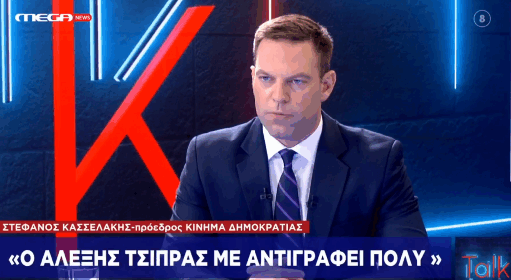 Σε μία εφ’ όλης της ύλης συνέντευξη στην εκπομπή «Talk» και τον Τάκη Χατζή, ο πρόεδρος του Κινήματος Δημοκρατίας, Στέφανος Κασσελάκης, άσκησε σκληρή κριτική στον Αλέξη Τσίπρα και στελέχη του ΣΥΡΙΖΑ, παρουσίασε το φορολογικό του σχέδιο και τοποθετήθηκε για τις διεθνείς εξελίξεις.