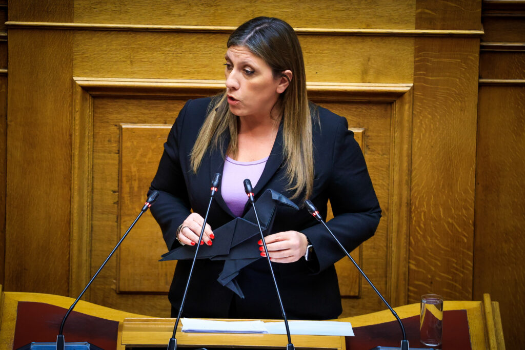 Η κριτική της, ωστόσο, επεκτάθηκε και στα εσωκομματικά της κυβερνώσας παράταξης, καταγγέλλοντας ένα σκοτεινό παρασκήνιο πιέσεων. Υποστήριξε ότι γύρω από την εμπλοκή στελεχών της Νέας Δημοκρατίας παίζονται «παιχνίδια εκβιασμών» και διακίνησης υλικού που εμπίπτει στο απόρρητο των επικοινωνιών και στο δικαστικό απόρρητο, προσθέτοντας πως υπάρχει εργαλειοποίηση της κοινοβουλευτικής ομάδας από τον Κυριάκο Μητσοτάκη μέσω του υφυπουργού, Γιώργου Μυλωνάκη.