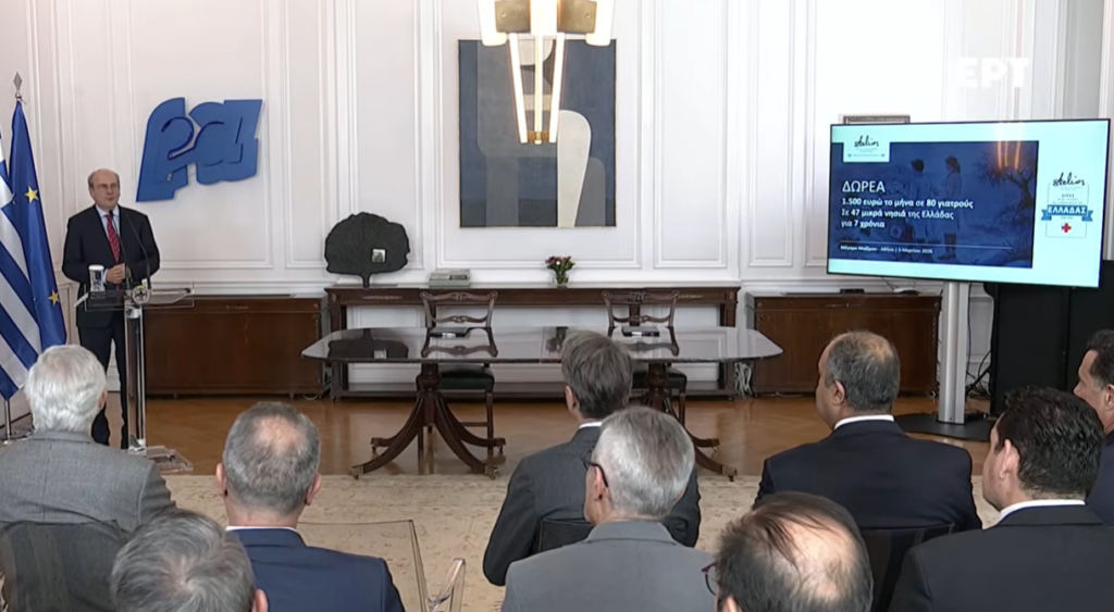 Σε εξέλιξη η ομιλία του Κυριάκου Μητσοτάκη στην εκδήλωση για τη δωρεά του Φιλανθρωπικού Ιδρύματος Στέλιος Χατζηιωάννου στο ΕΣΥ. Η δωρεά έχει σκοπό την οικονομική ενίσχυση ιατρών που υπηρετούν σε μικρά νησιά της χώρας με πληθυσμό κάτω των 4.000 κατοίκων κατά τη χειμερινή περίοδο.