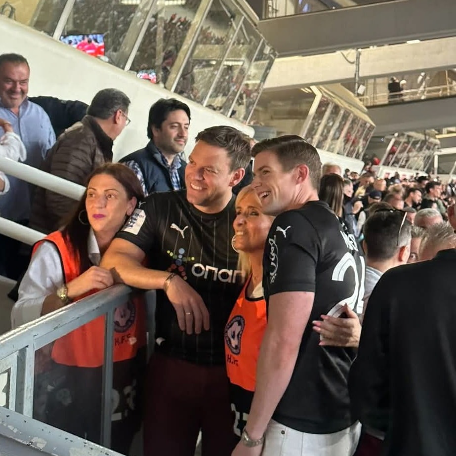 Μερικά πράγματα δεν χρειάζονται λεζάντα. Όπως, ας πούμε, η εικόνα του Στέφανου Κασσελάκη με τον σύζυγό του Τάιλερ, δύο εντυπωσιακές γυναικείες παρουσίες και… τέσσερις φανέλες του ΟΦΗ, στα επίσημα του ΟΑΚΑ. Ναι, το είδαμε κι αυτό στον τελικό Κυπέλλου ανάμεσα σε ΟΦΗ και Ολυμπιακό – και, για να είμαστε ειλικρινείς, το χαρήκαμε.