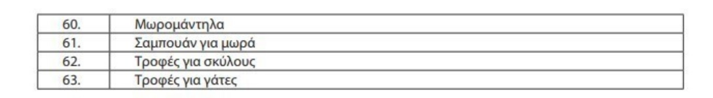 Η λίστα με 63 προϊόντα