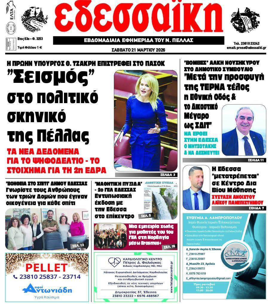 Στο προσκήνιο επανέρχονται τα σενάρια πολιτικών επιστροφών στο ΠΑΣΟΚ, με αφορμή πρωτοσέλιδο δημοσίευμα της τοπικής εφημερίδας «Εδεσσαϊκή», το οποίο κάνει λόγο για πιθανή επιστροφή της Θεοδώρας Τζάκρη στο κόμμα.