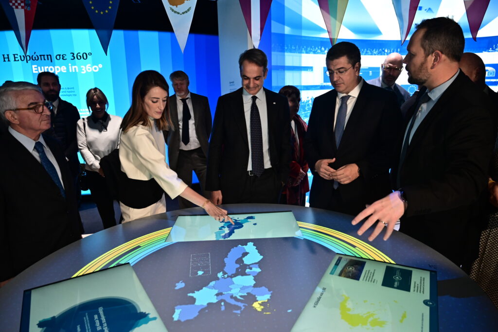 Στο Αρσάκειο Μέγαρο για τα εγκαίνια του κέντρου Europa Experience βρέθηκαν το πρωί της Παρασκευής ο πρωθυπουργός Κυριάκος Μητσοτάκης και η πρόεδρος του Ευρωπαϊκού Κοινοβουλίου, Ρομπέρτα Μέτσολα.