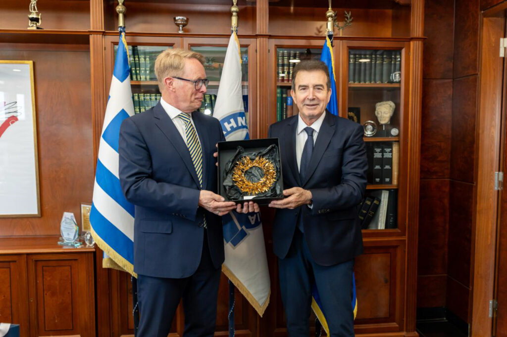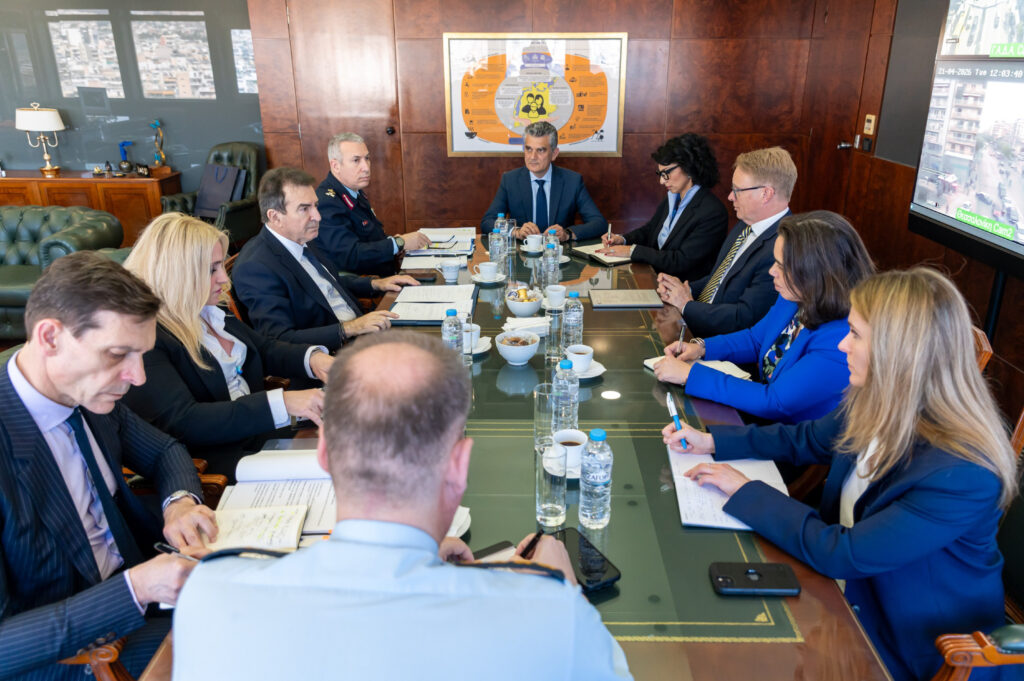 Η ενίσχυση συνεργασίας για την προστασία των εξωτερικών συνόρων της Ευρωπαϊκής Ένωσης βρέθηκε στο επίκεντρο της νέας συνάντησης του υπουργού Προστασίας του Πολίτη Μιχάλη Χρυσοχοΐδη με τον Εκτελεστικό Διευθυντή της Frontex, Χανς Λέιτενς, στην Αθήνα. Παρόντες ήταν ο Γενικός Γραμματέας Δημόσιας Τάξης Παναγιώτης Στάθης και ο Αρχηγός της Ελληνικής Αστυνομίας Αντιστράτηγος Δημήτριος Μάλλιος.