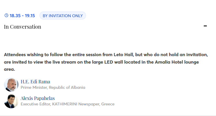 Το φόρουμ λειτουργεί ως πλατφόρμα διαλόγου για κρίσιμα διεθνή ζητήματα, ενώ παράλληλα προσφέρει την ευκαιρία για παράλληλες διπλωματικές επαφές υψηλού επιπέδου, όπως αυτή μεταξύ Μητσοτάκη και Ράμα. Οι δύο ηγέτες αναμένεται επίσης να τοποθετηθούν δημόσια στο πλαίσιο των εργασιών του φόρουμ, παρουσιάζοντας τις θέσεις τους για την οικονομική ανάπτυξη, τη σταθερότητα στην περιοχή και τις προοπτικές συνεργασίας.