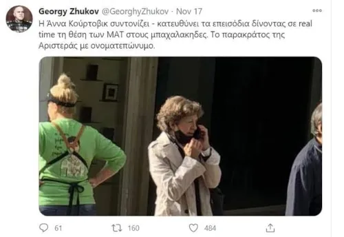 Στην επίμαχη ανάρτηση, που οδήγησε στην καταδίκη για συκοφαντική δυσφήμιση, o “Georgy Zhukov” είχε ανεβάσει φωτογραφία της Γιάννας Κούρτοβικ να μιλάει στο κινητό της, ισχυριζόμενος ότι «συντονίζει» επεισόδια κατά των ΜΑΤ και μιλώντας για «παρακράτος της Αριστεράς»: