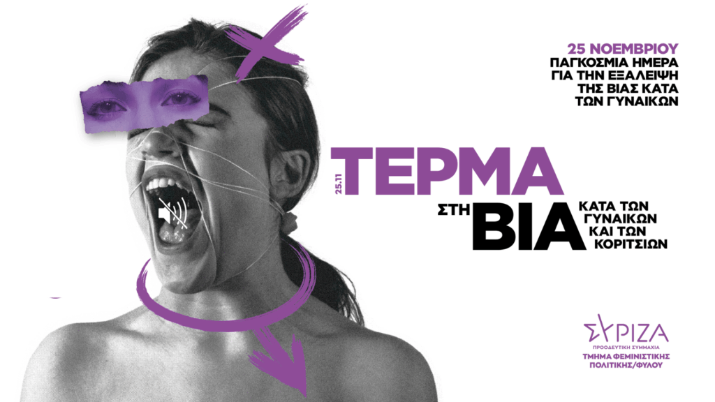 Με αφορμή την 25η Νοεμβρίου, Διεθνή Ημέρα για την Εξάλειψη της Βίας κατά των Γυναικών, το Τμήμα Φεμινιστικής Πολιτικής του ΣΥΡΙΖΑ-ΠΣ εξέδωσε ανακοίνωση-καταπέλτη, καλώντας τα μέλη και τους φίλους του κόμματος να δώσουν δυναμικό παρόν στις κινητοποιήσεις. Στην Αθήνα, το ραντεβού έχει δοθεί για τις 5:00 το απόγευμα στην πλατεία Κλαυθμώνος, με πορεία προς το Σύνταγμα.