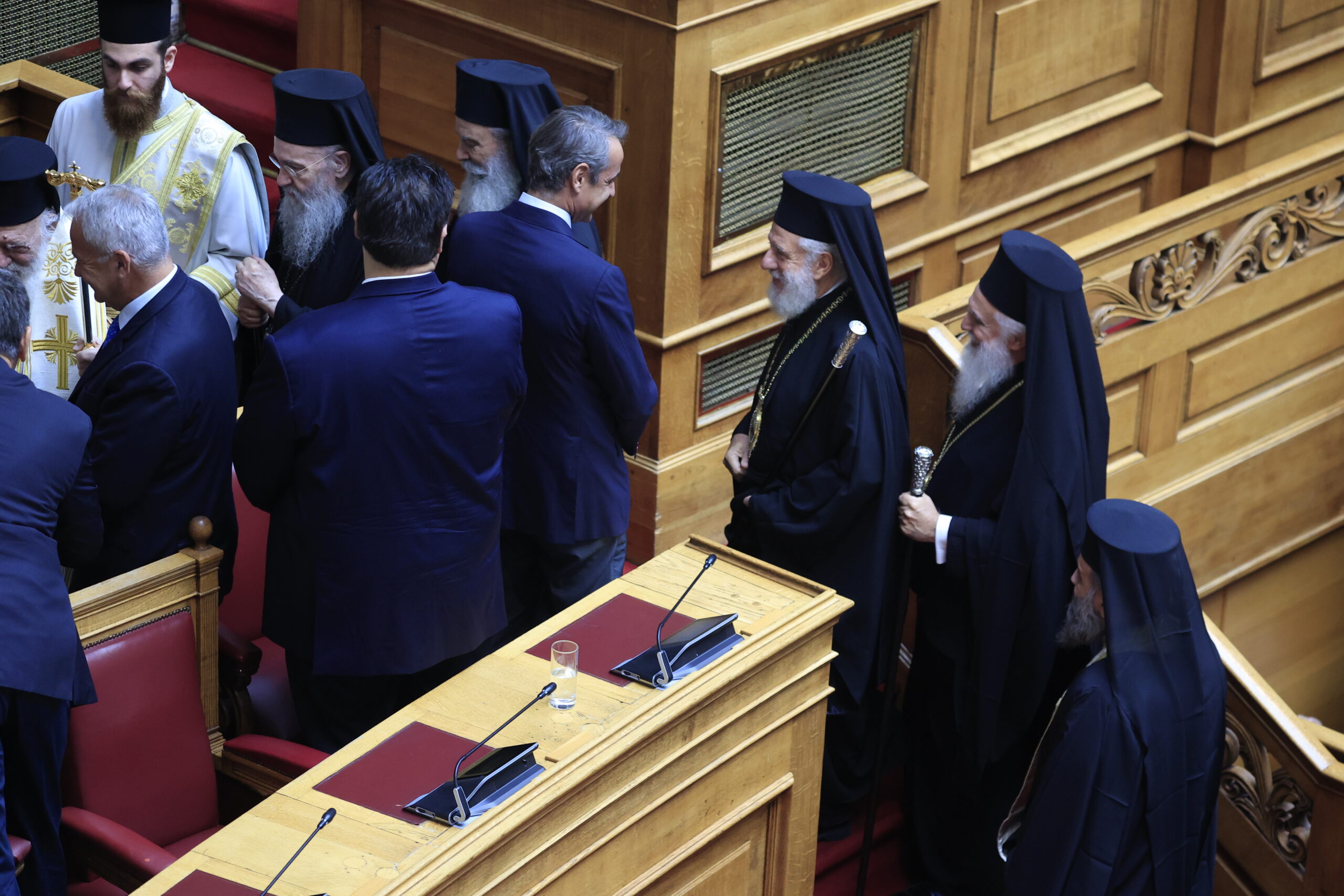Με την παρουσία του Πρωθυπουργού Κυριάκου Μητσοτάκη και των βουλευτών των κομμάτων, πραγματοποιήθηκε το πρωί στη Βουλή ο Αγιασμός για την έναρξη της νέας κοινοβουλευτικής περιόδου. Τον Αγιασμό τέλεσε ο Αρχιεπίσκοπος Αθηνών και Πάσης Ελλάδος Ιερώνυμος. Οι βουλευτές των κομμάτων έδωσαν το παρών, ενώ δεν έλειψαν και οι αναμνηστικές φωτογραφίες μεταξύ τους.