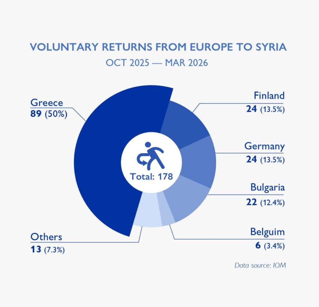 Πέρα από το κομμάτι των ανακλήσεων, η χώρα μας καταγράφει εντυπωσιακές επιδόσεις και στον τομέα των υποβοηθούμενων εθελούσιων επιστροφών. Στο πλαίσιο μιας δράσης που συγχρηματοδοτείται από την Ευρωπαϊκή Ένωση και υλοποιείται σε συνεργασία με τον ΔΟΜ Ελλάδας, η χώρα μας κατέλαβε την πρωτιά μεταξύ των κρατών-μελών. Από τον Οκτώβριο του 2025 μέχρι σήμερα, πραγματοποιήθηκαν συνολικά 178 επιστροφές από την ΕΕ προς τη Συρία, με την Ελλάδα να είναι υπεύθυνη για τις 89 από αυτές.